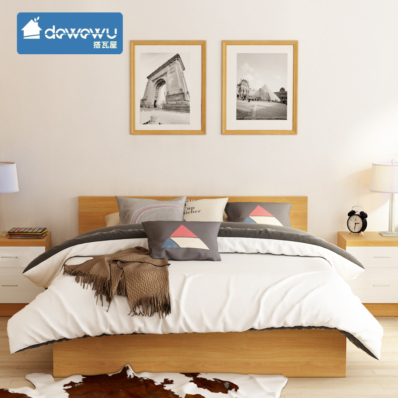 搭瓦屋现代简约板式床床头柜家用家具双人床DH-M75-180