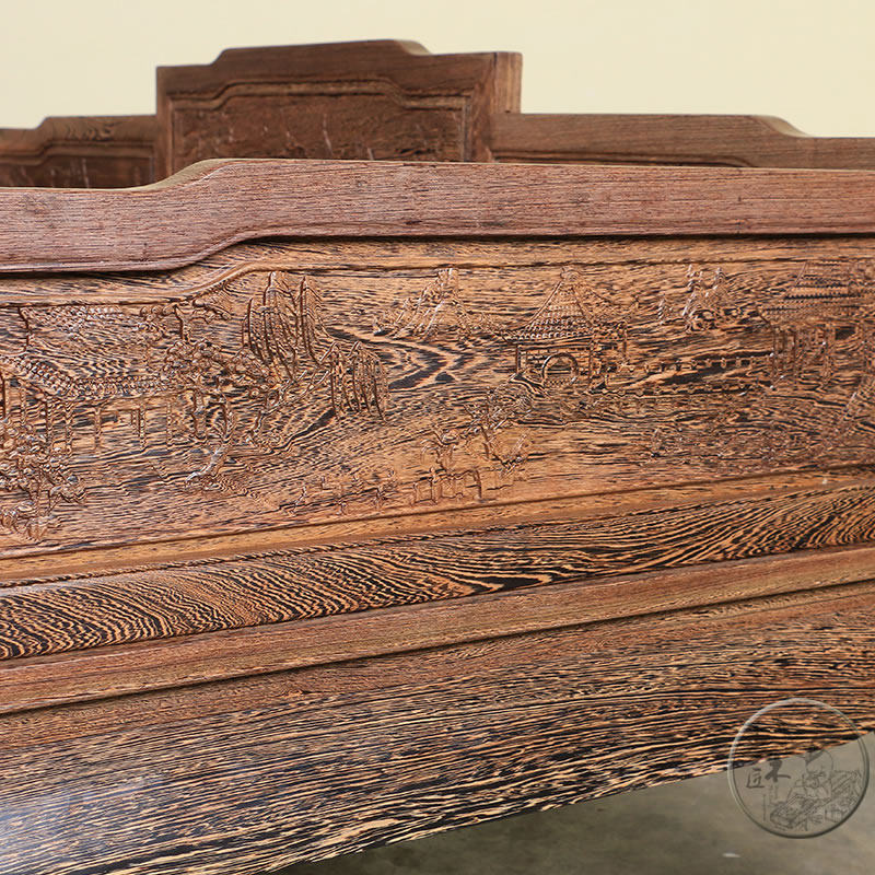 王木匠红木家具鸡翅木罗汉床三件套山水罗汉床
