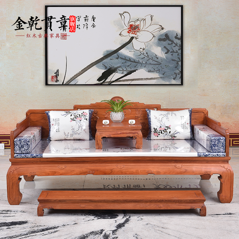 金乾贯章红木家具明清仿古实木沙发床HLCT038