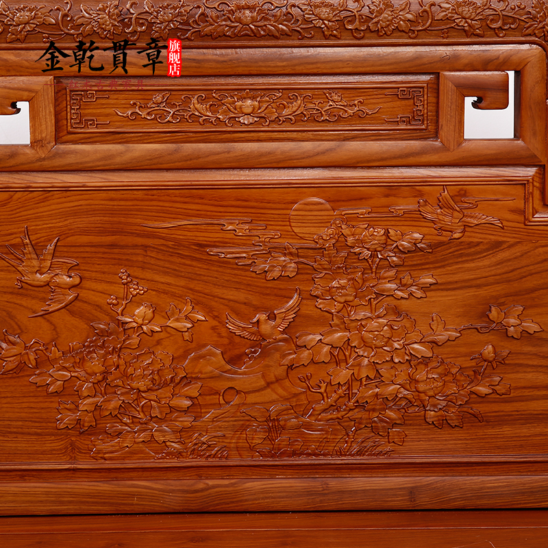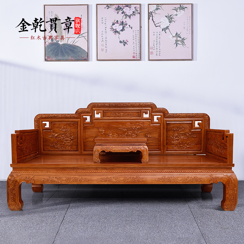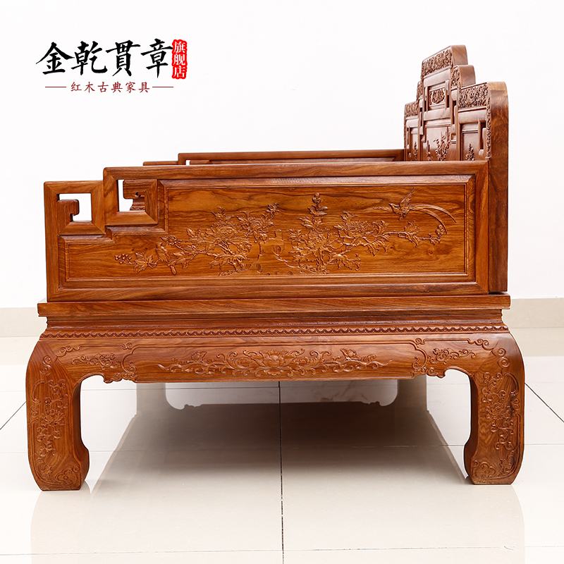 金乾贯章红木家具花梨木花鸟雕花罗汉床HXG0223-YU