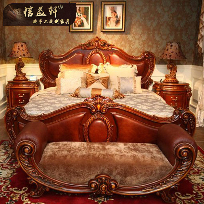 信益轩美式实木真皮床C-027