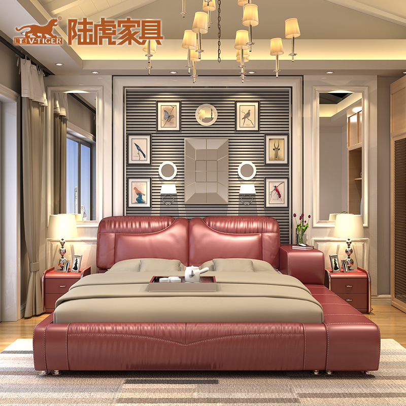 陆虎多功能储物真皮床LH-8066