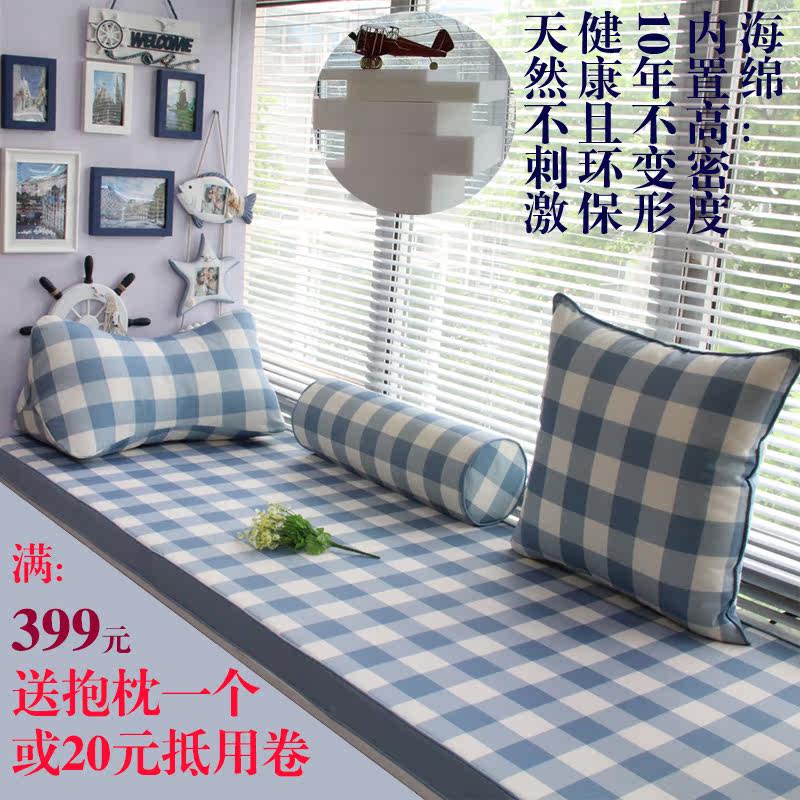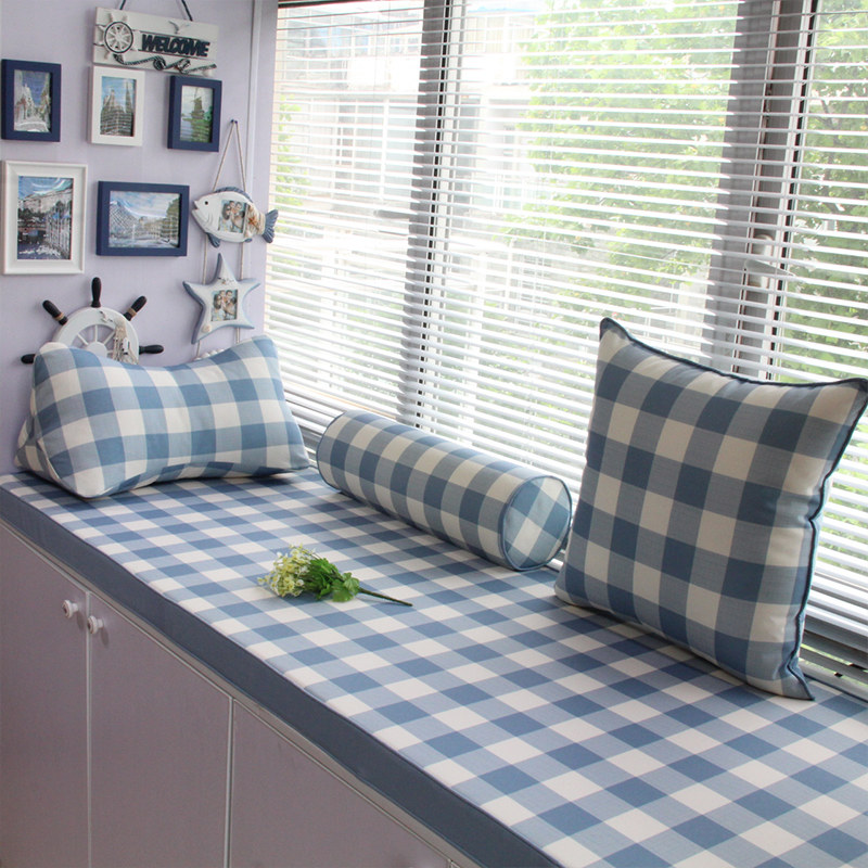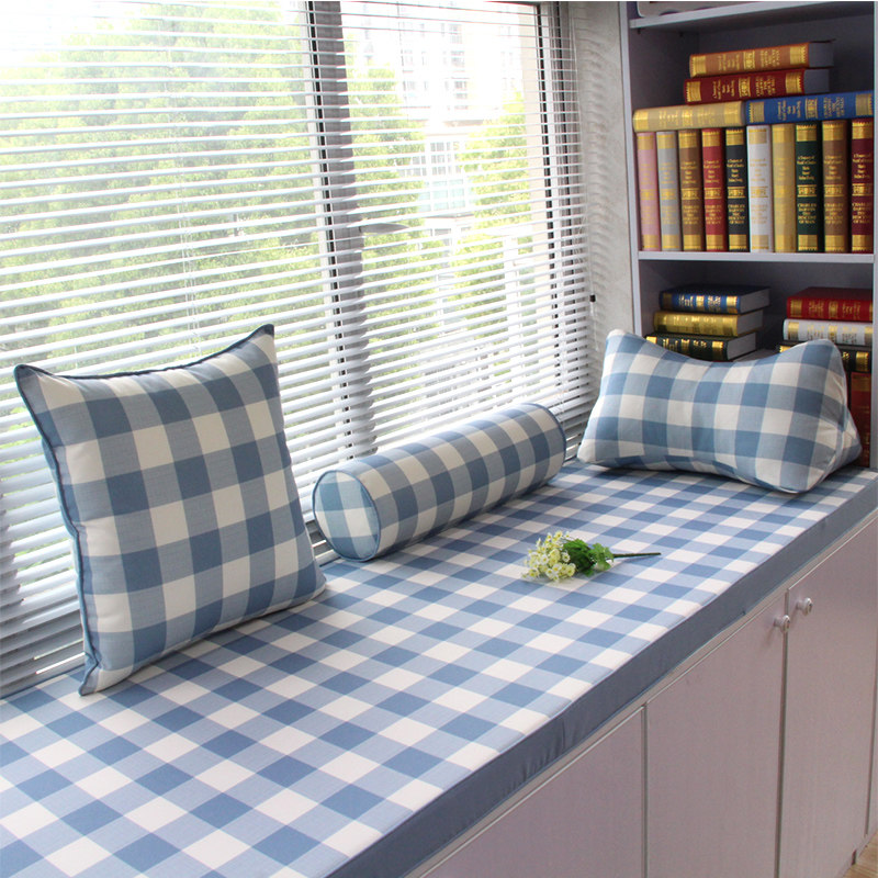 星沁海绵飘窗垫活性印染-蓝格子
