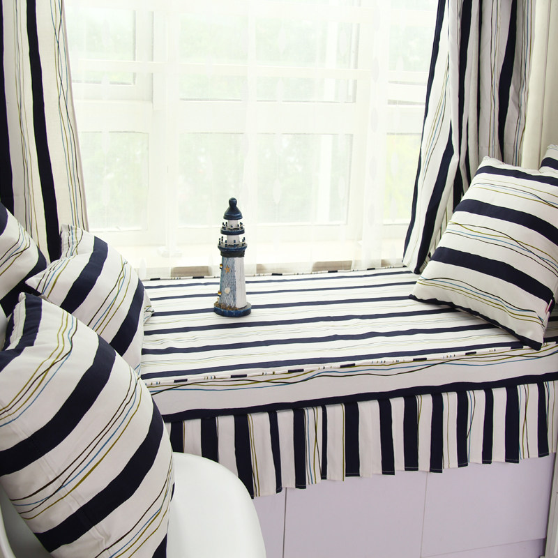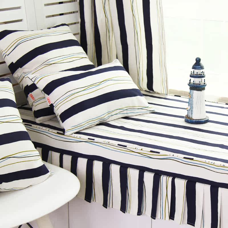 御书房条纹榻榻米飘窗垫藏蓝色条纹