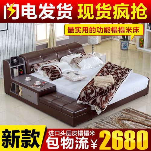装典美家简约真皮床储物床p601