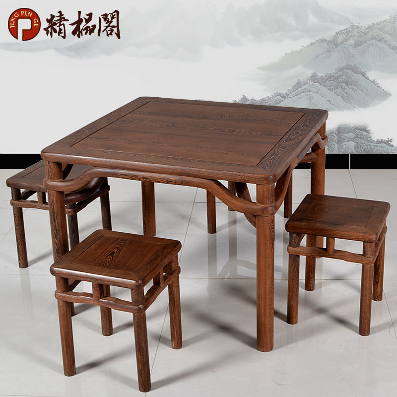 精榀阁鸡翅木方形餐桌椅P075