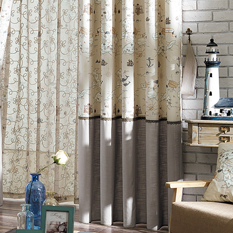 仿亚麻印花窗帘