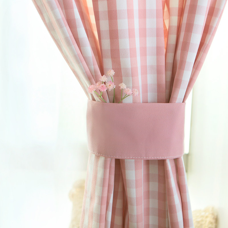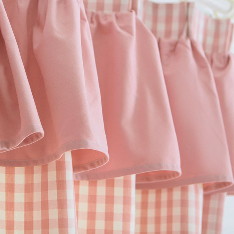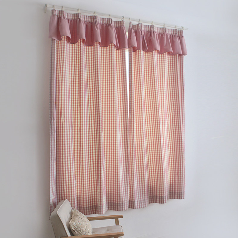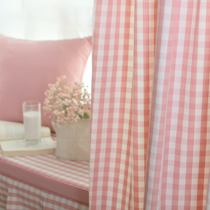 锦色华年小格子带幔窗帘粉小格带幔窗帘