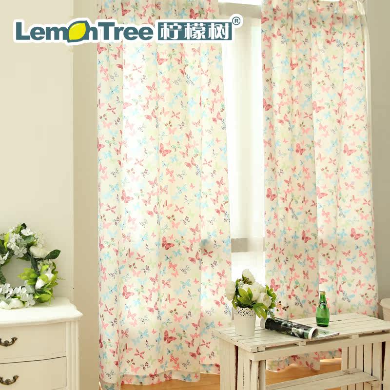 柠檬树蝴舞飞杨韩式小清新布艺窗帘CL14052