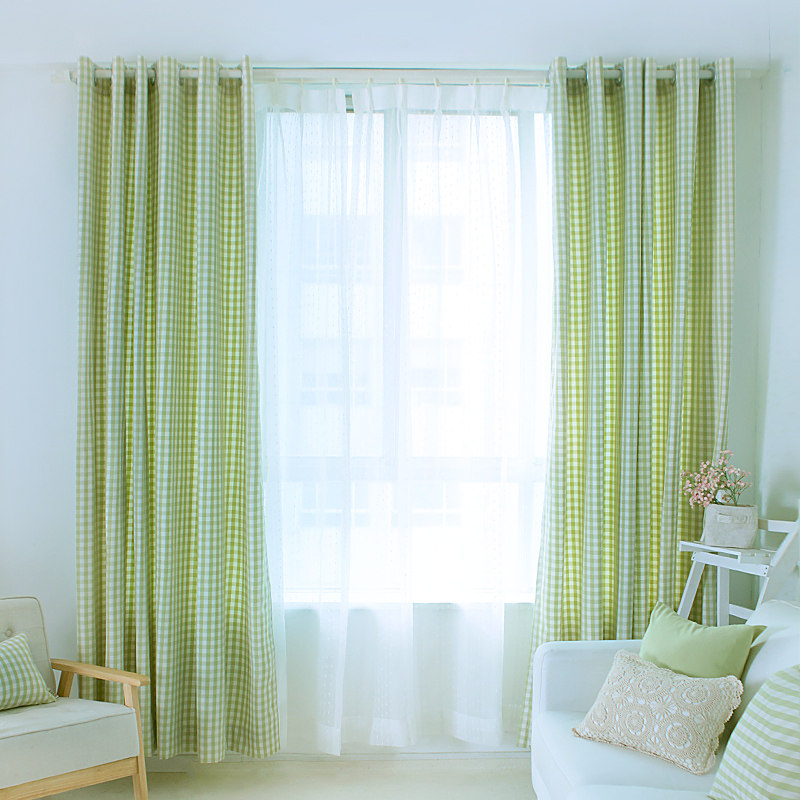 锦色华年小格子布艺窗帘CT1102