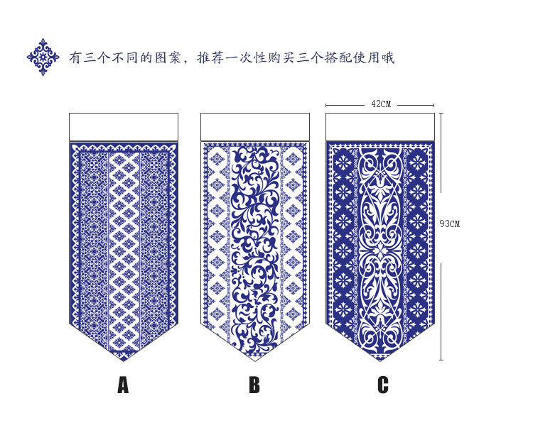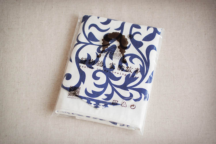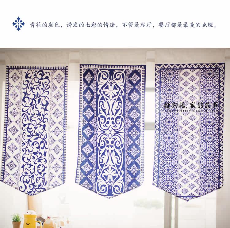缝物语青花瓷中式棉麻旗帘C25TC42