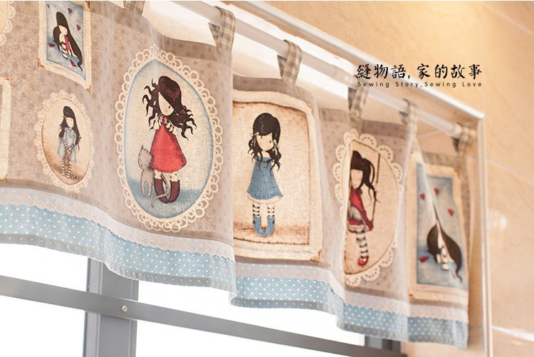 缝物语插画小女孩棉麻复古柜帘B01CT02