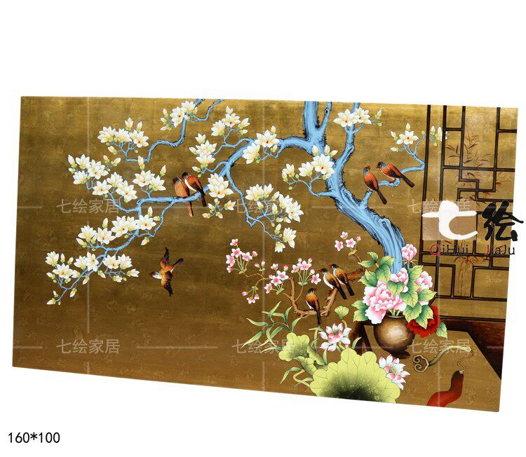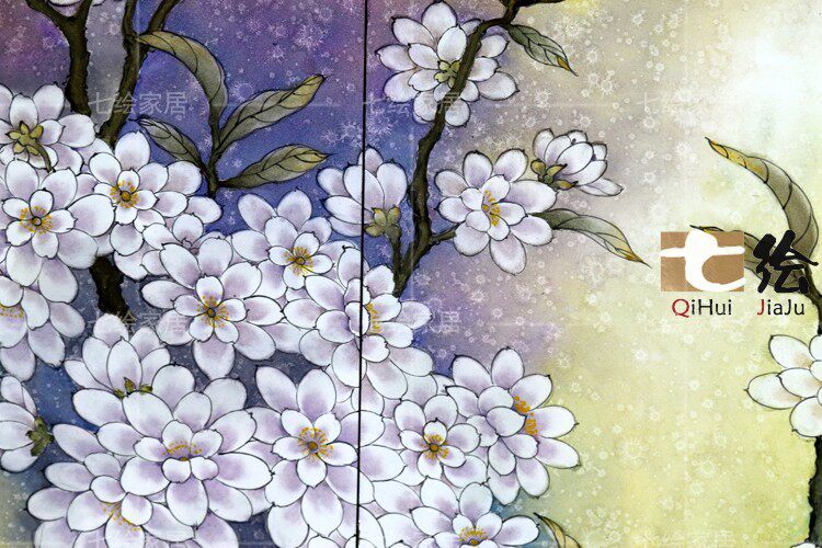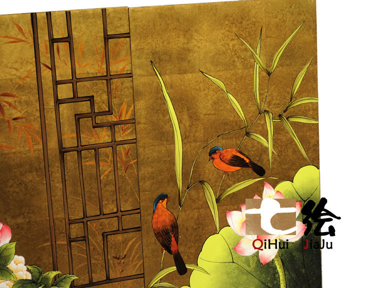 七绘沙发背景屏风帘p079