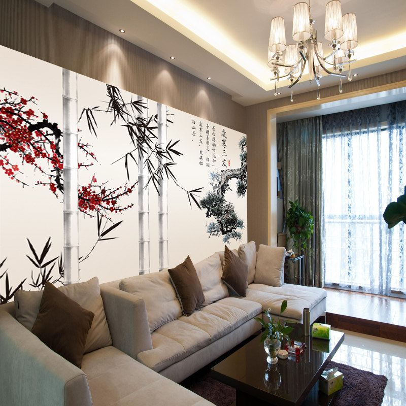 艺舍无缝壁画水墨梅花竹子墙画