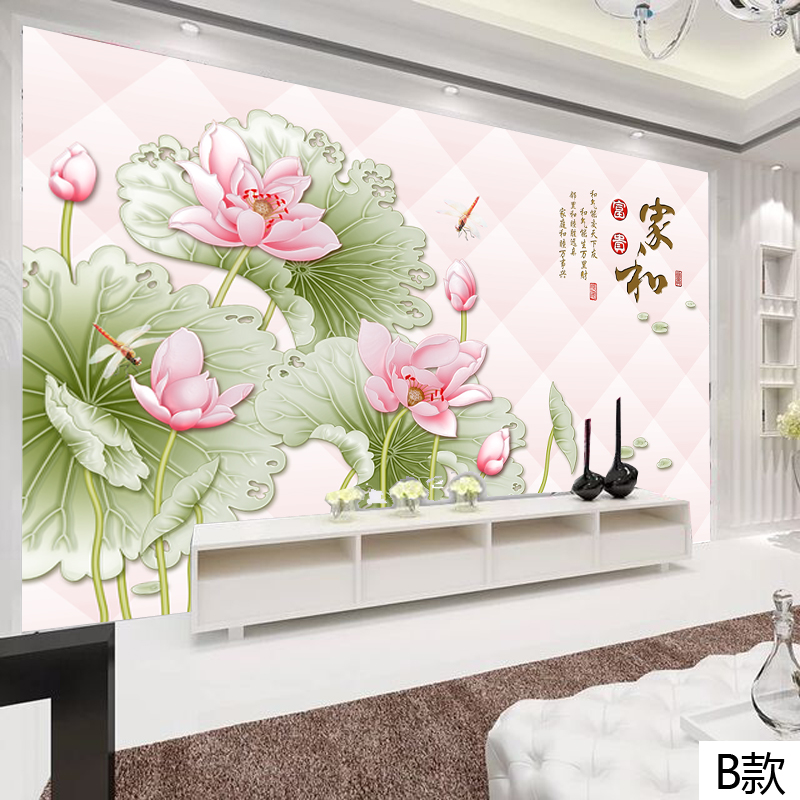 艺舍玉雕荷花3d立体大型壁纸
