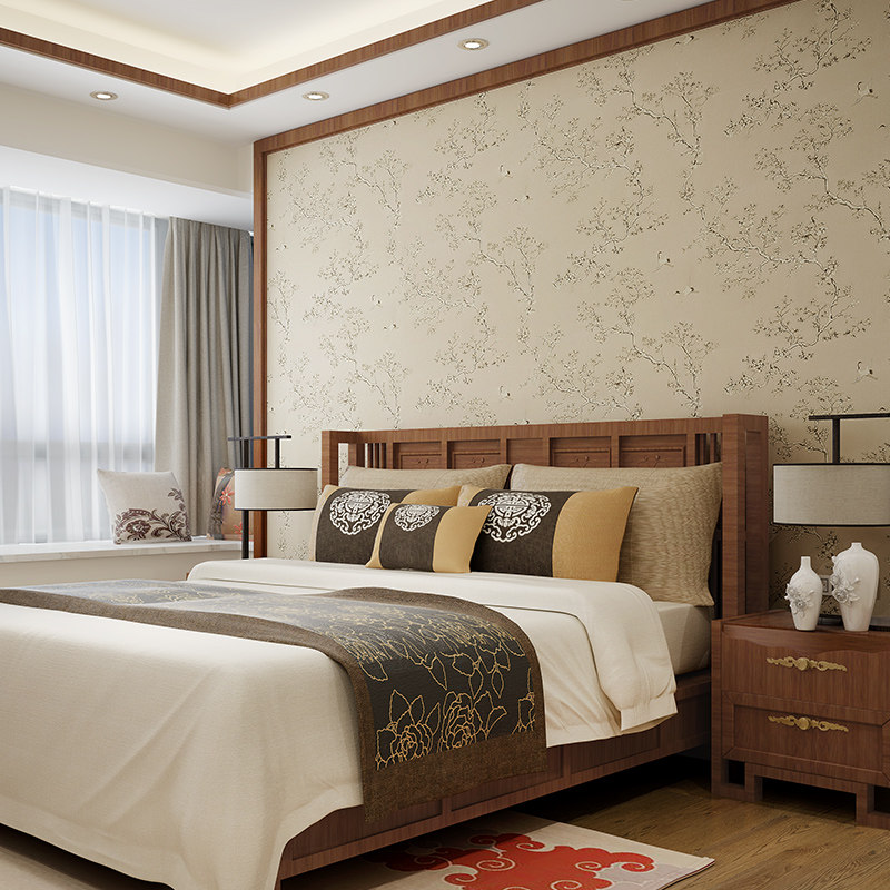 欣旺中式复古花鸟无纺布墙纸chi35590