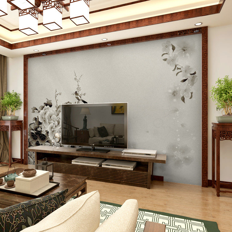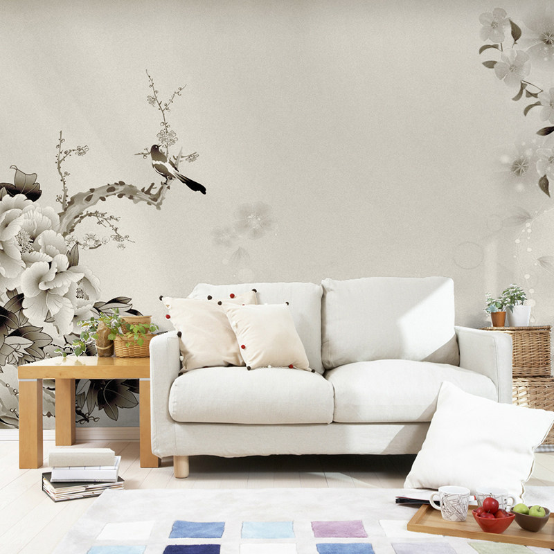 塞丽雅简约中式壁画水墨花鸟