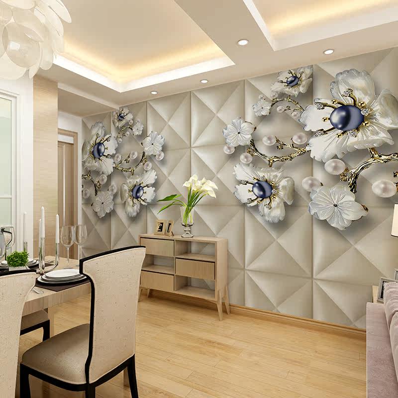 大视野欧式淡雅白色花朵珍珠无缝壁纸16054629