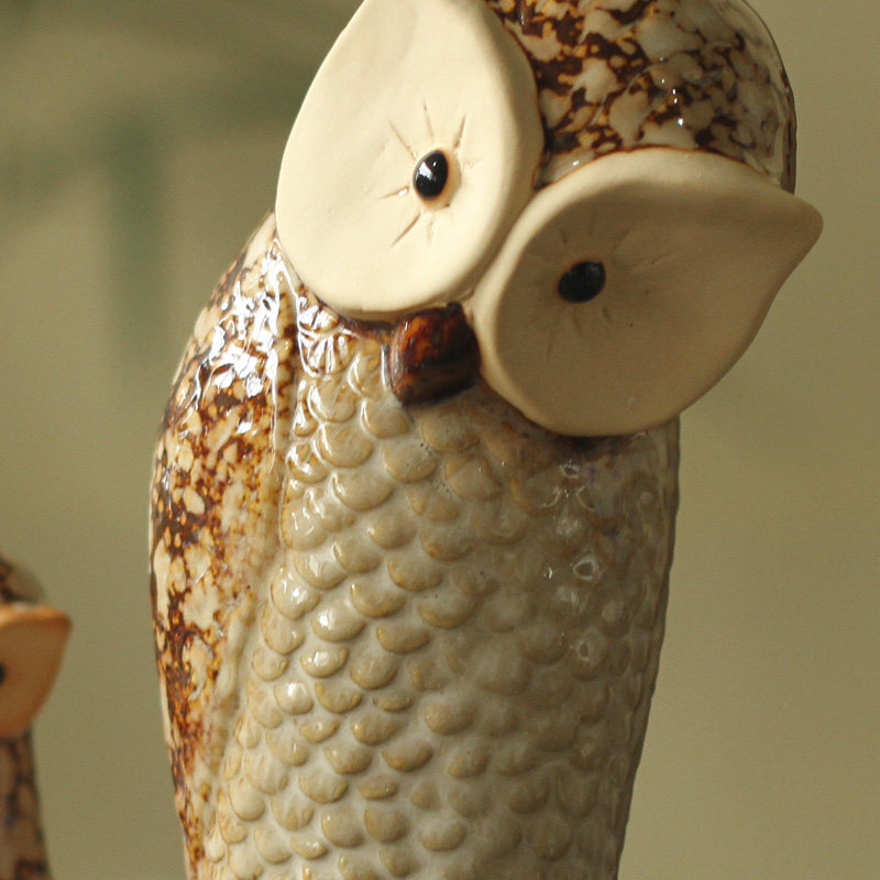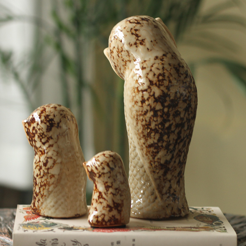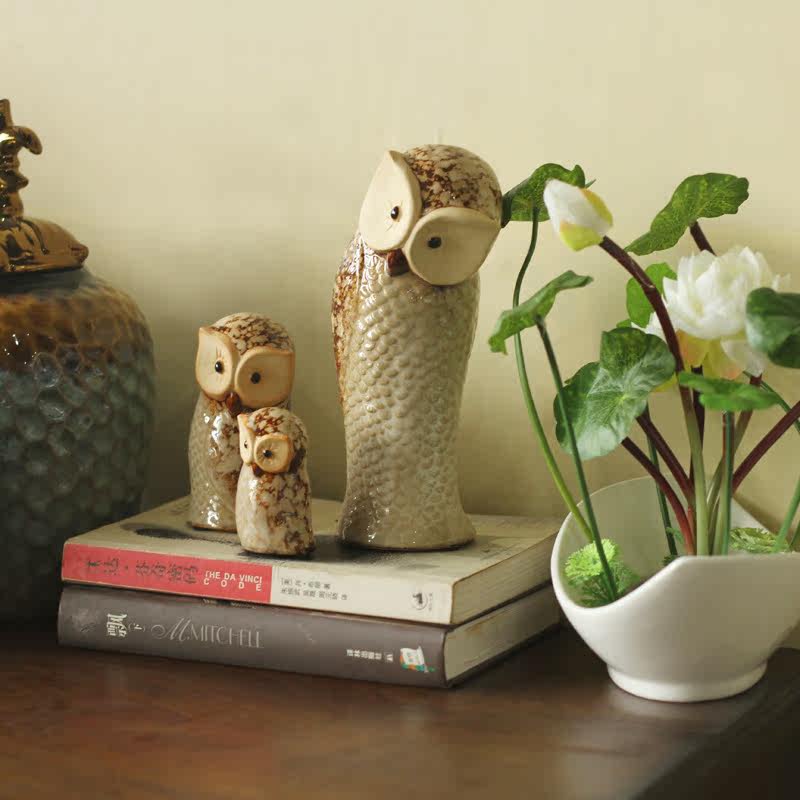 鸟与花家工艺品陶瓷摆件猫头鹰一家三口