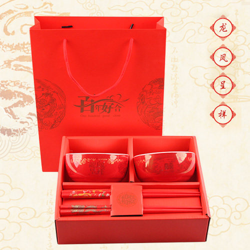 越然碗中国红喜庆结婚喜宴礼品3213