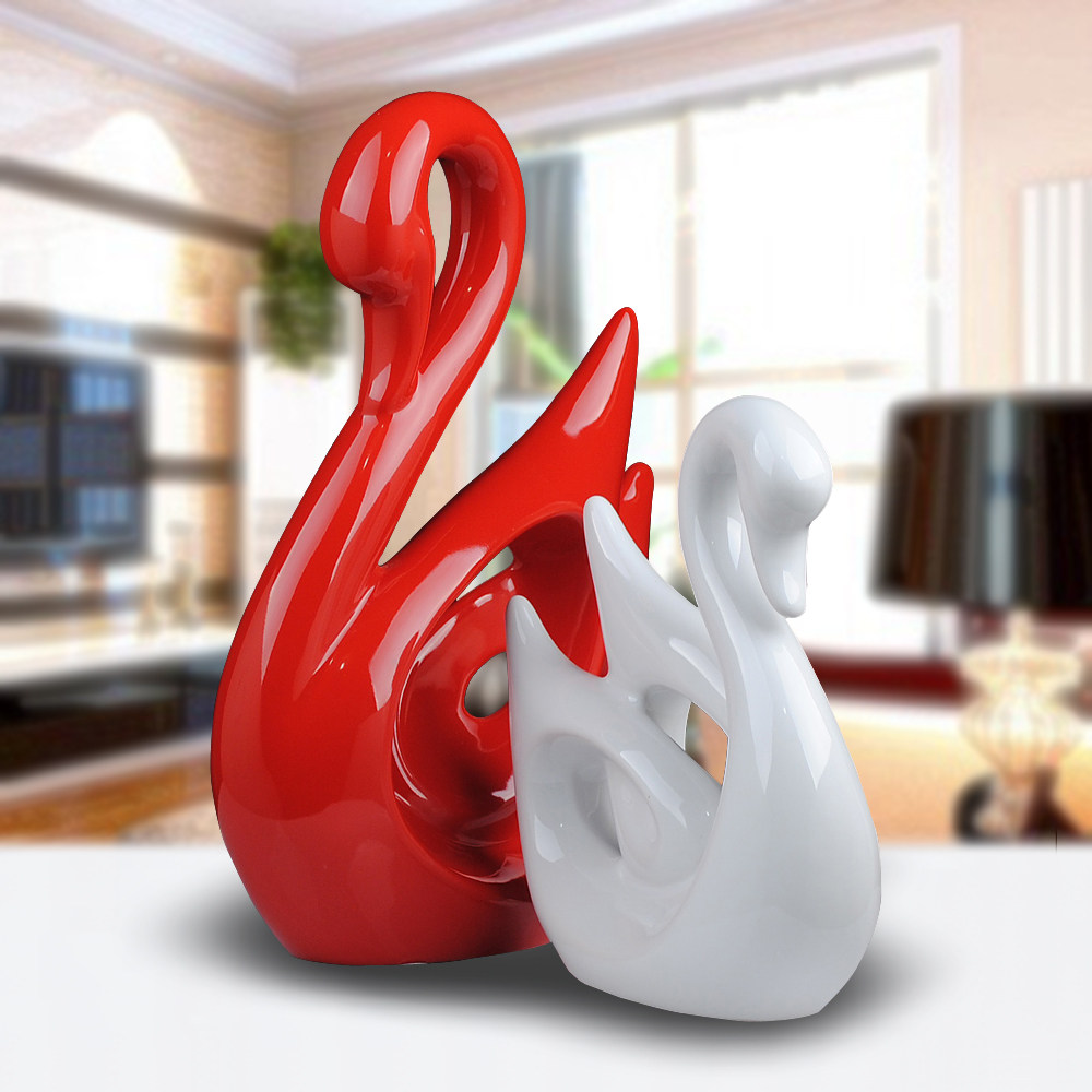 鸿轩陶瓷红白情侣天鹅HX-31532