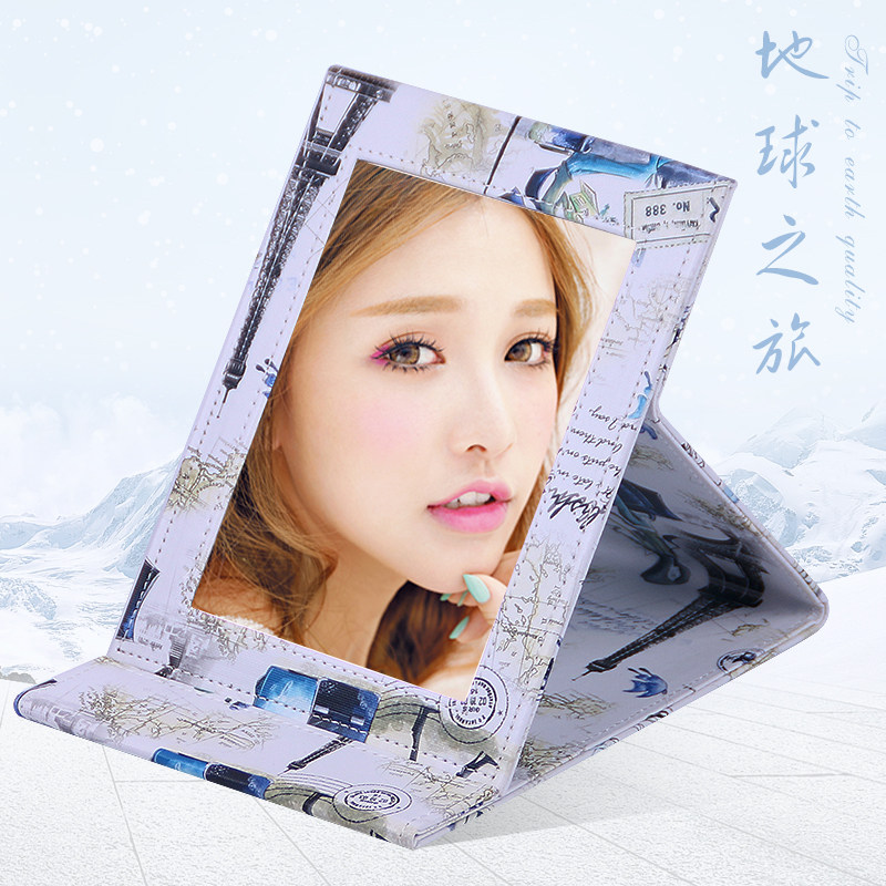 华美仕韩国精致pu皮革折叠台式镜子hmesi78522
