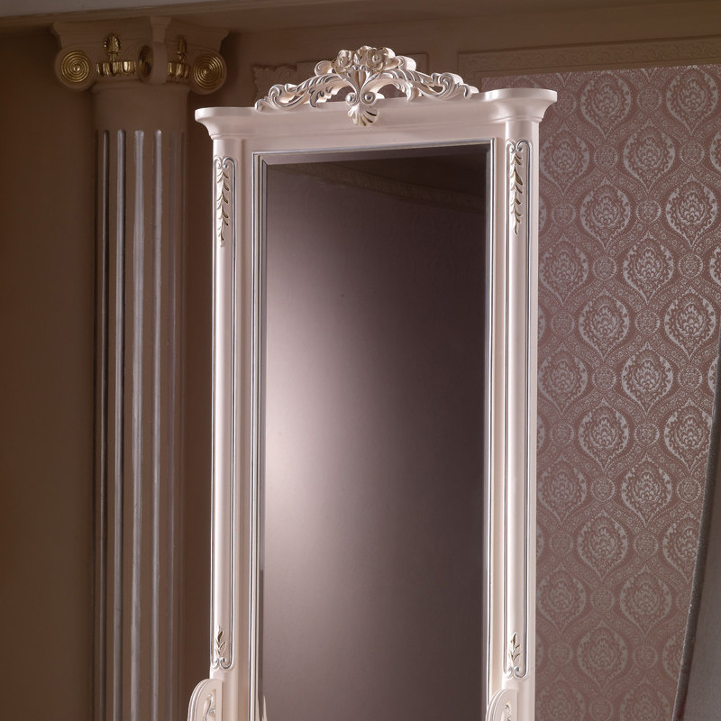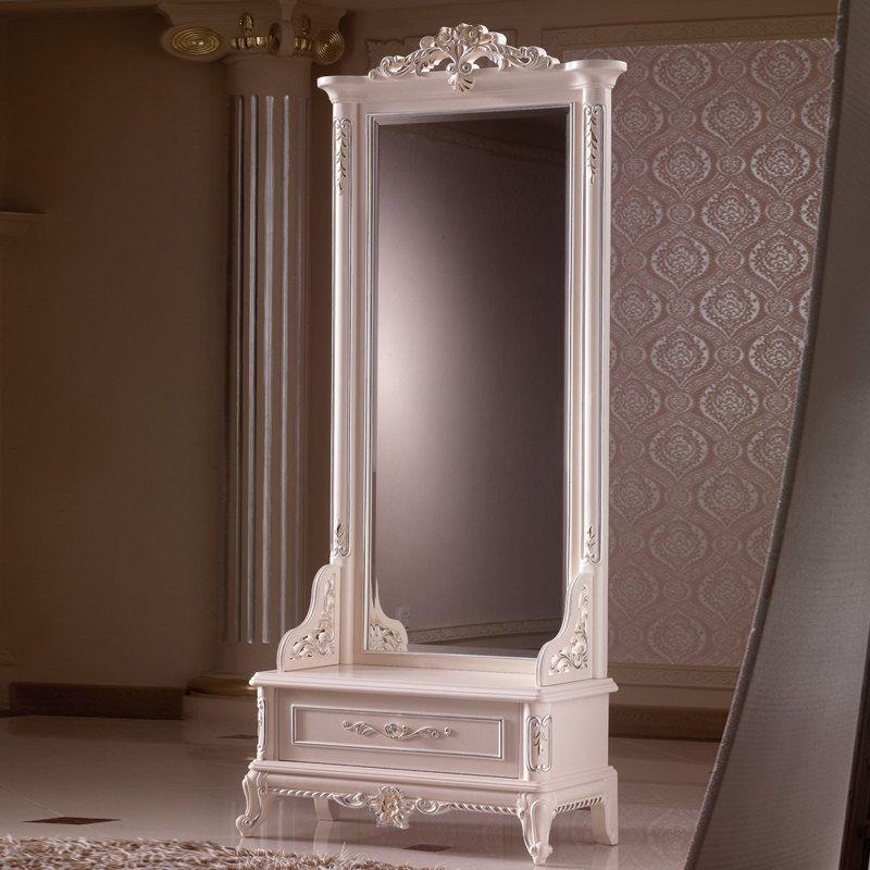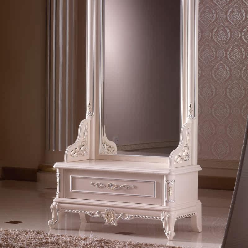 信益轩欧式实木穿衣镜落地试衣镜白色全身储物镜子家具