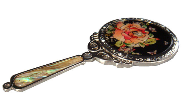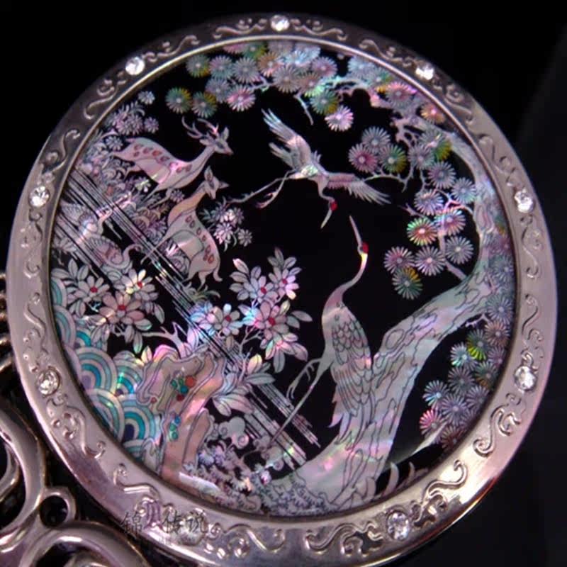 锦贝传说创意贝壳手柄镜牡丹手柄