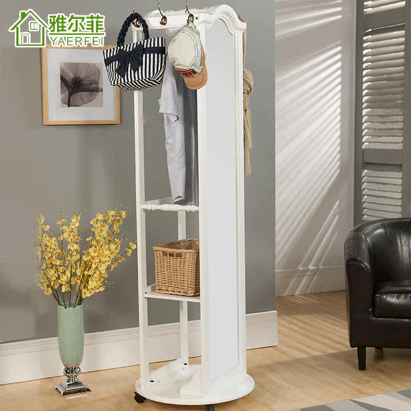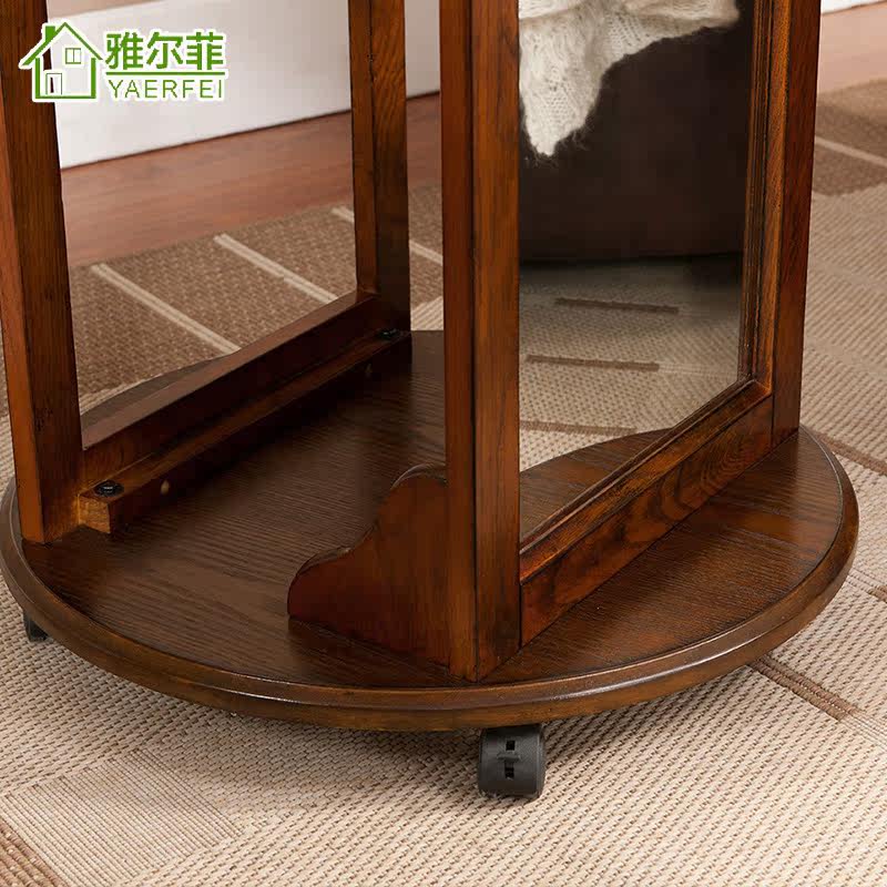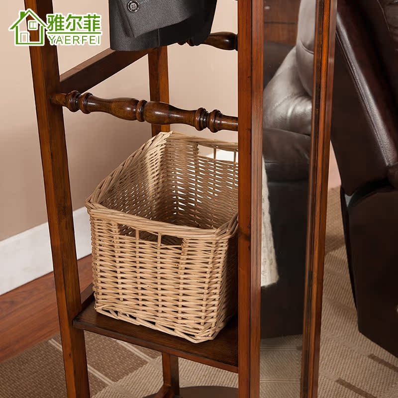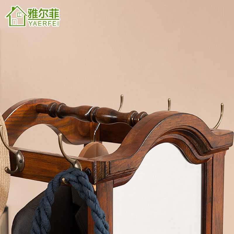 雅尔菲美式实木落地挂衣架镜子YMJ101