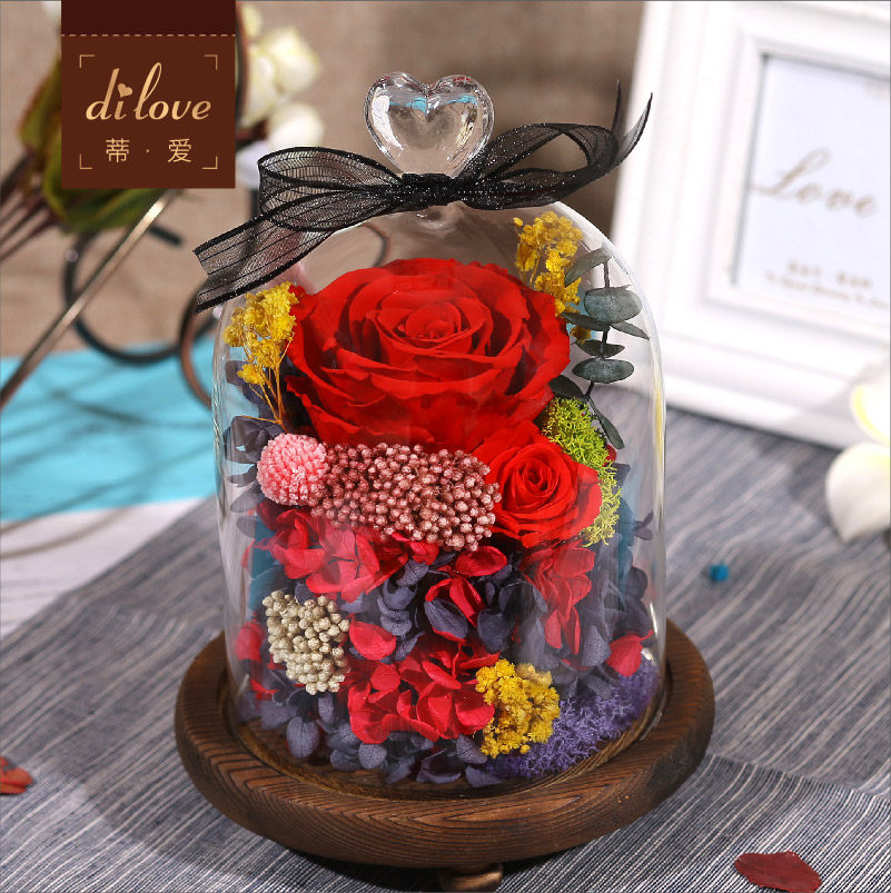 蒂爱永生花玻璃罩礼盒DL187
