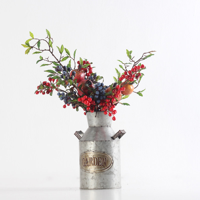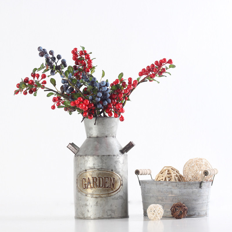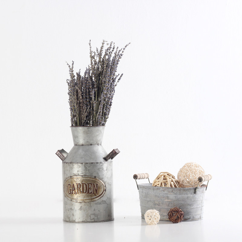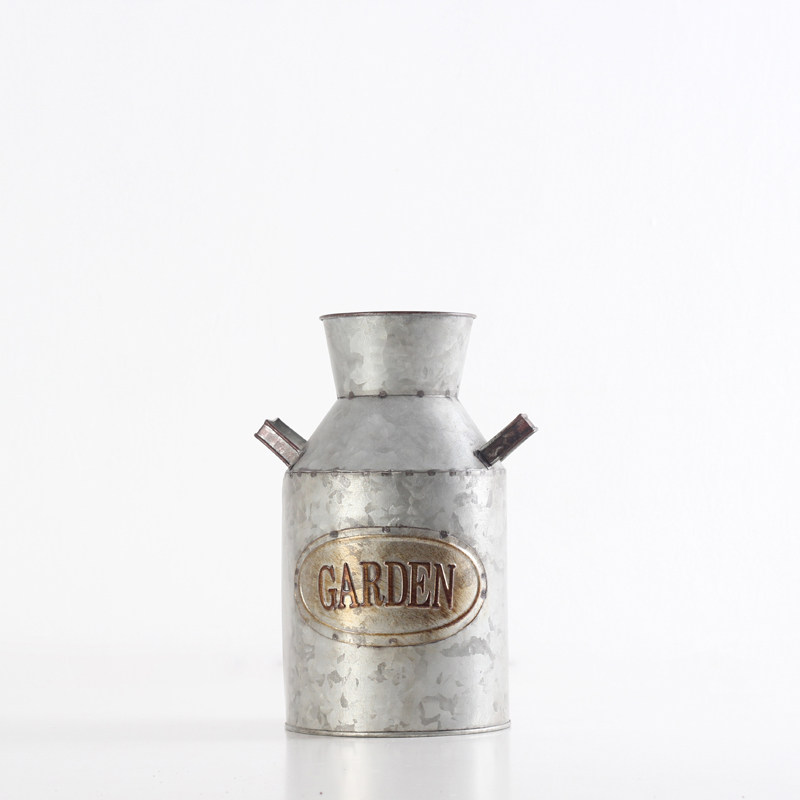 可爱家欧式田园杂货做旧铁皮花瓶双耳铁皮桶