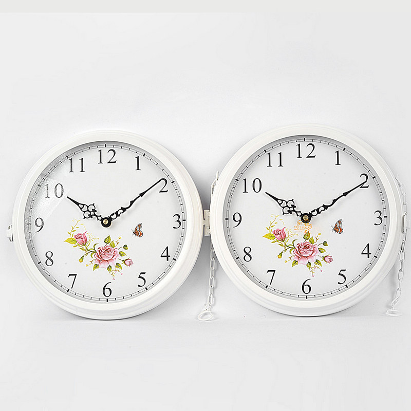 雅居坊铁艺钟静音欧式双面钟2583