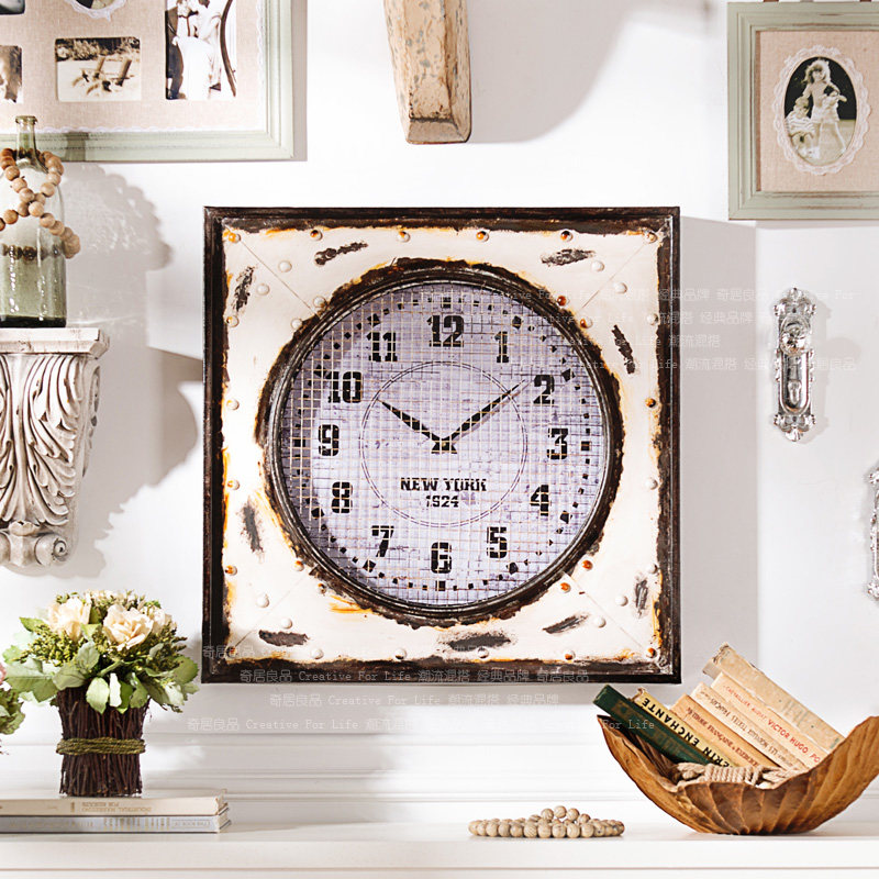 奇居良品美式墙面复古装饰钟表GZ0046