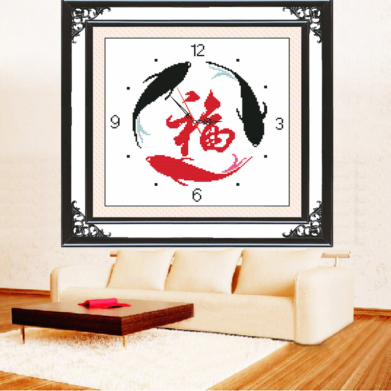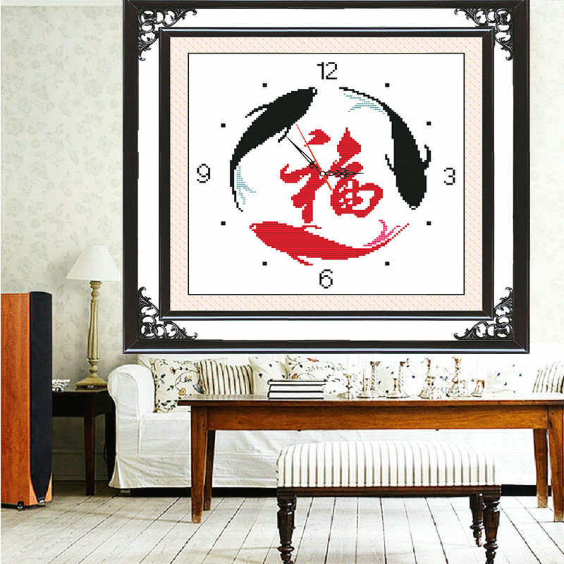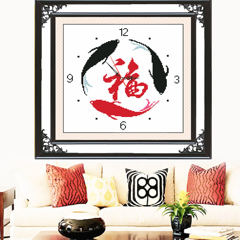 美吖精准印花十字绣年年有余鱼钟表S-63824