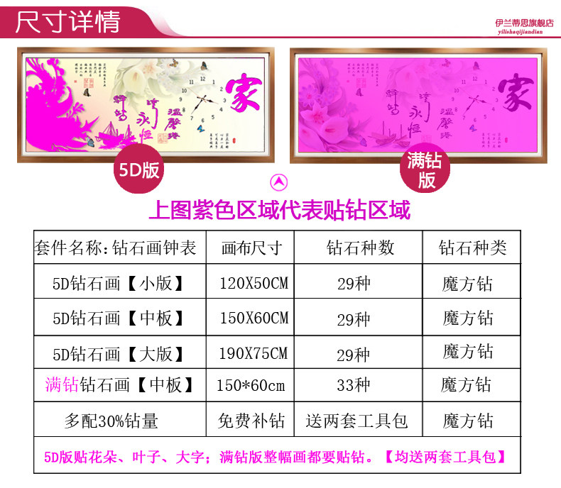 伊兰蒂思满钻十字绣贴钻画钟表T-039