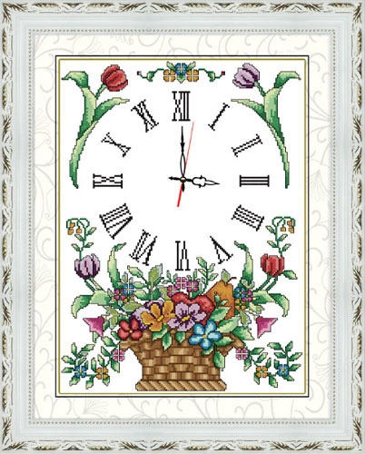 海开牡丹印花十字绣钟表1034-2