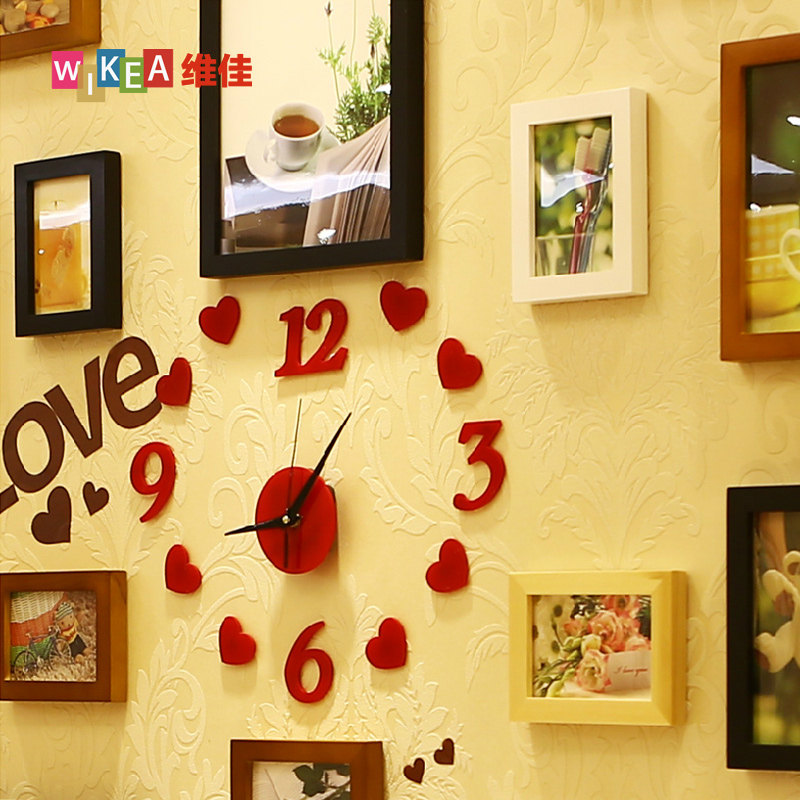维佳框业实木照片墙挂钟表