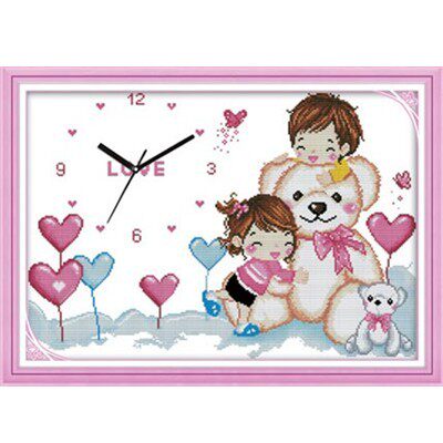 海开牡丹十字绣钟表