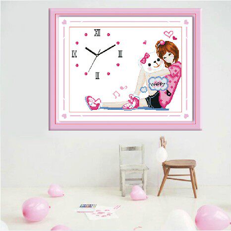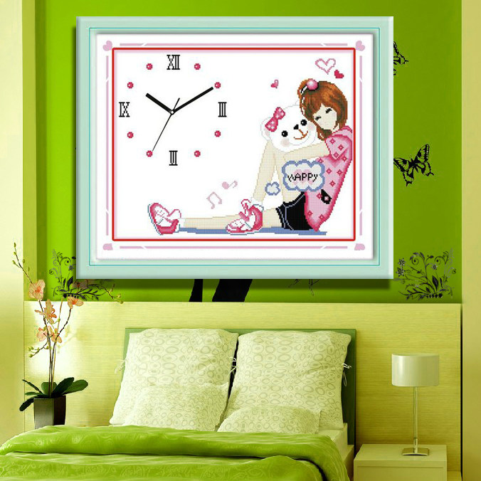 绣魁精准印花十字绣钟785014
