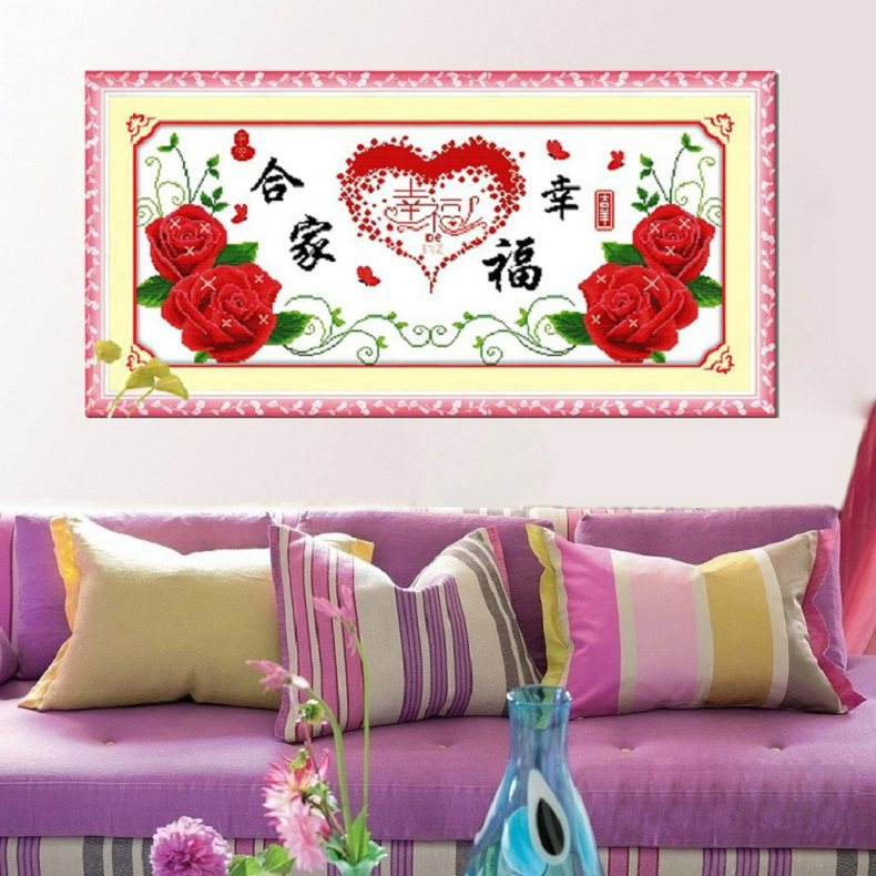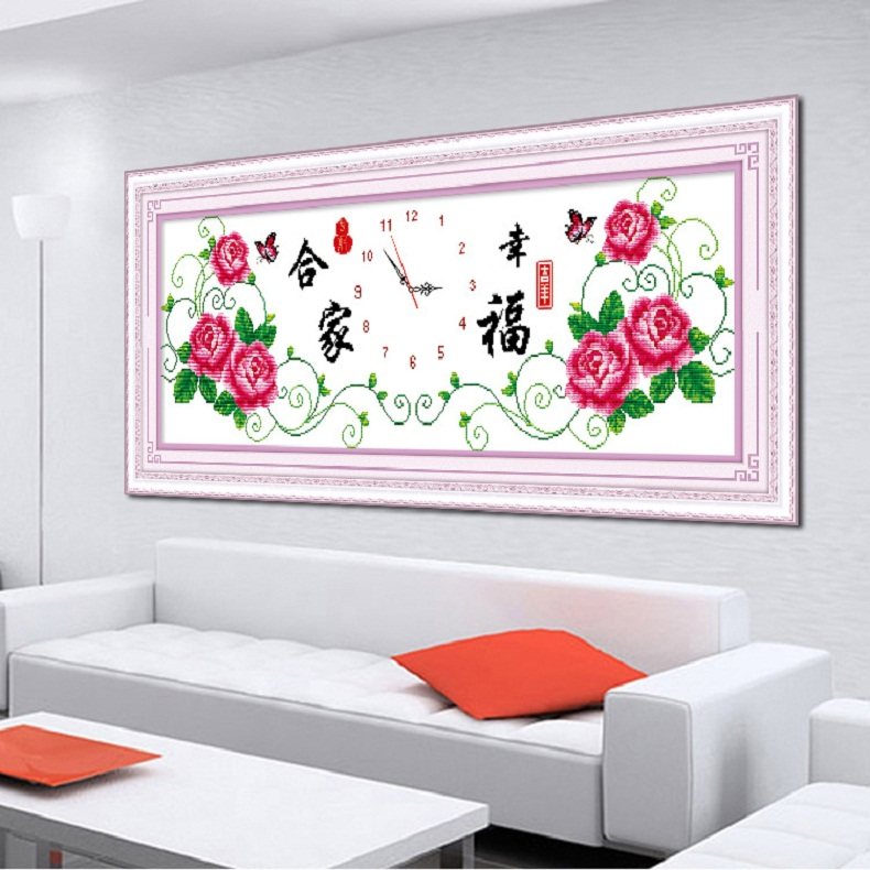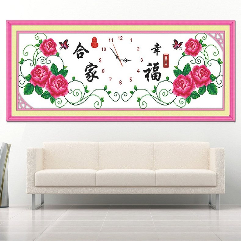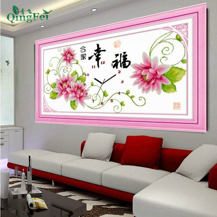 青飞精准印布十字绣合家幸福十字绣钟70136
