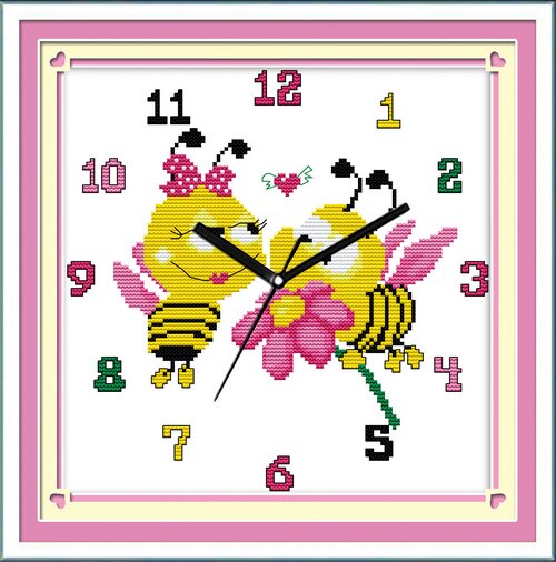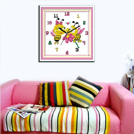 绣魁精准印花十字绣甜甜蜜蜜蜜蜂挂钟785266