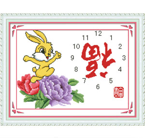 海开牡丹印花时钟十字绣钟表312