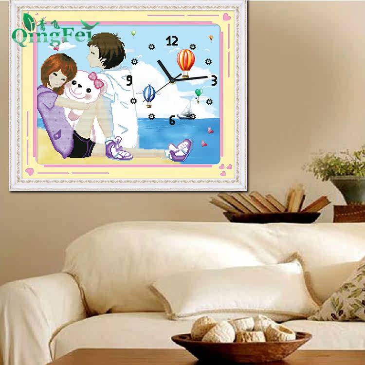 青飞快乐时光情侣版十字绣情侣爱情小熊卡通挂钟q-313