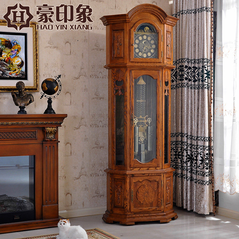 豪印象白蜡木欧式机械落地钟表0905
