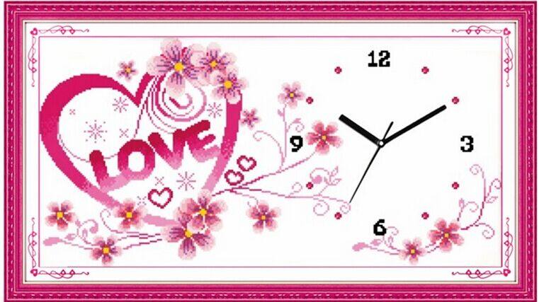 海开牡丹精准印布婚庆十字绣结婚钟2003