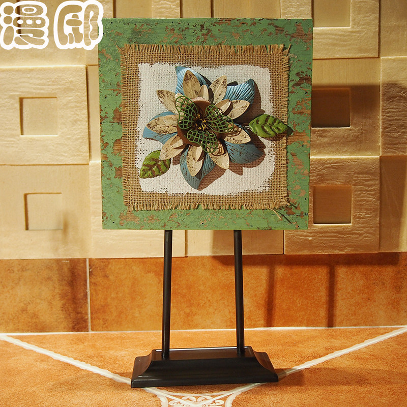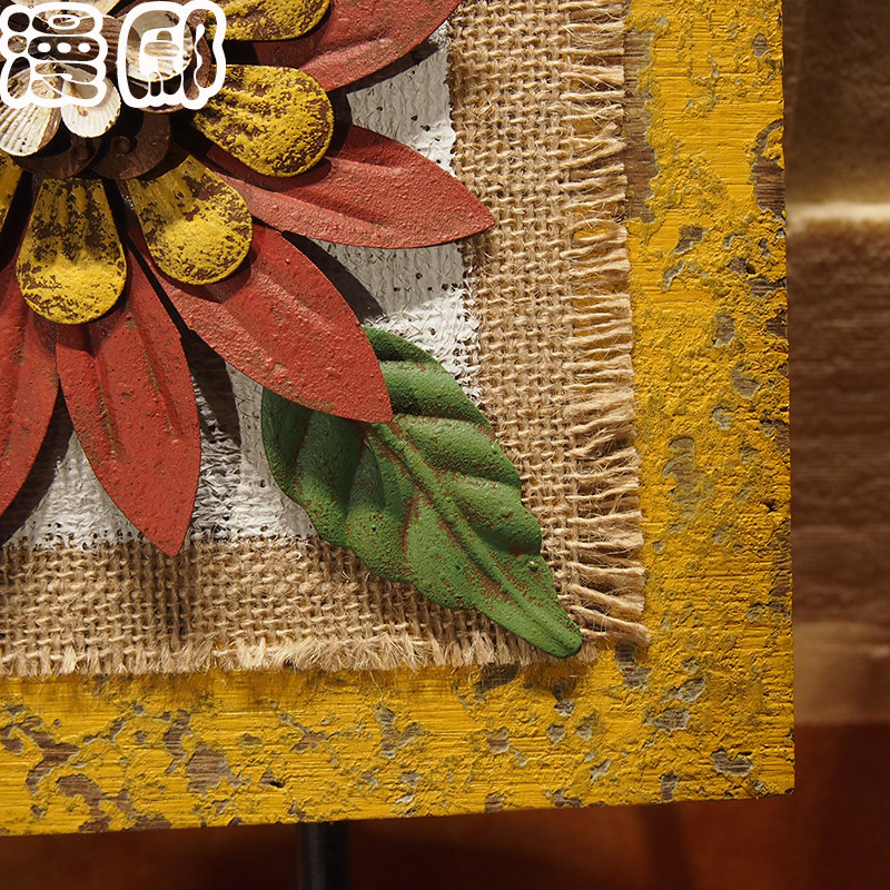 漫邸美式套三复古木板铁艺花摆设D15002