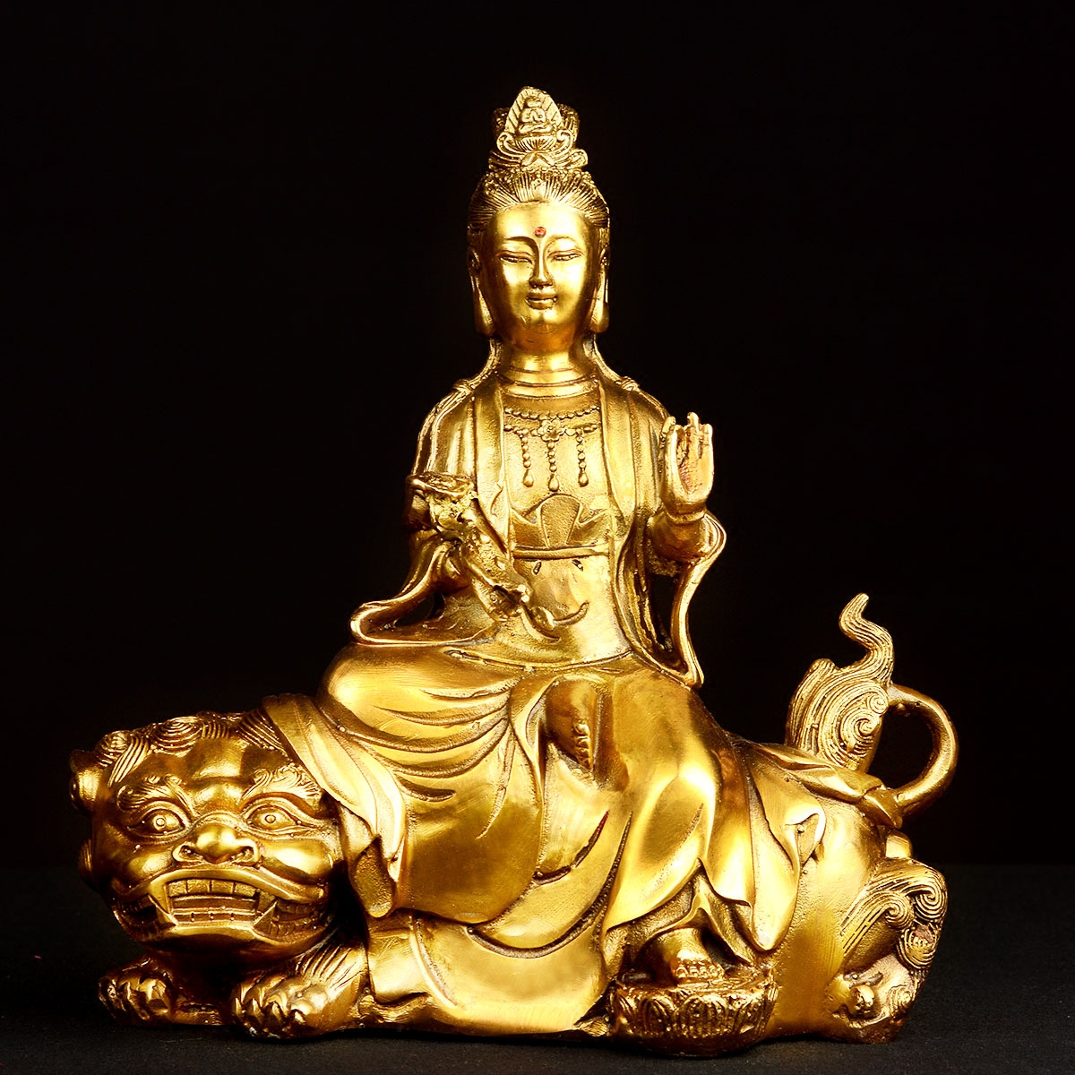 风水阁纯铜文殊普贤菩萨摆件15088