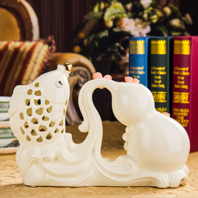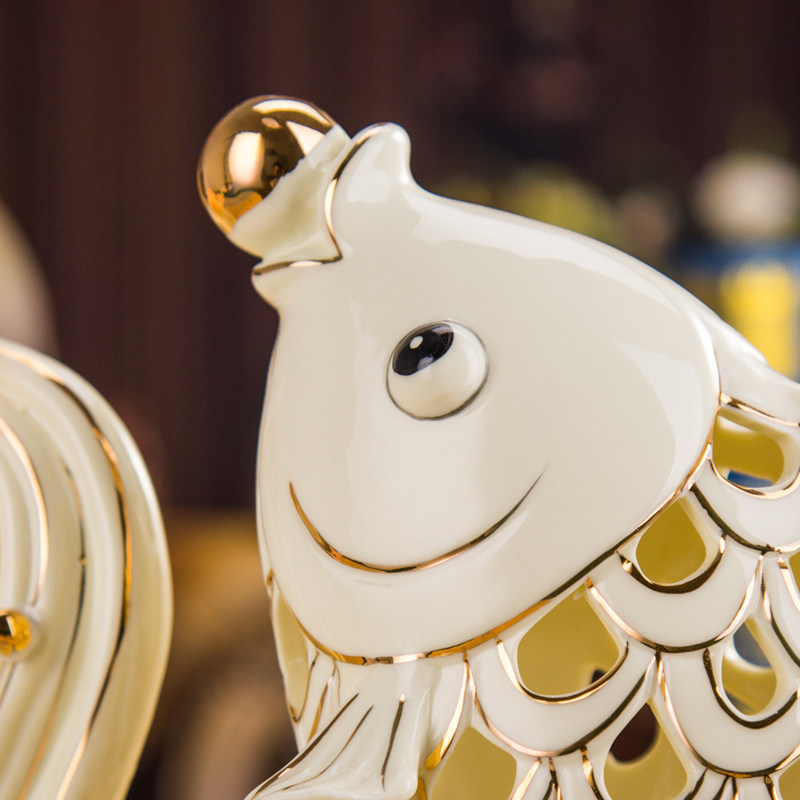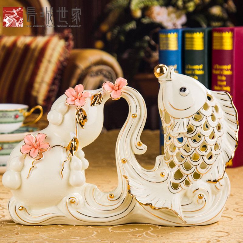 长城欧式陶瓷葫芦金龙鱼摆件043