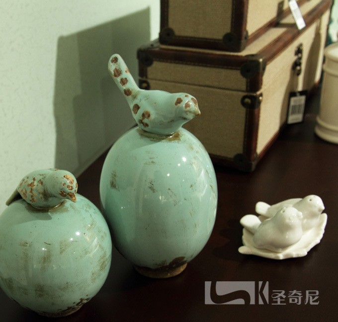 圣奇尼家居美式做旧风格陶瓷小鸟摆设