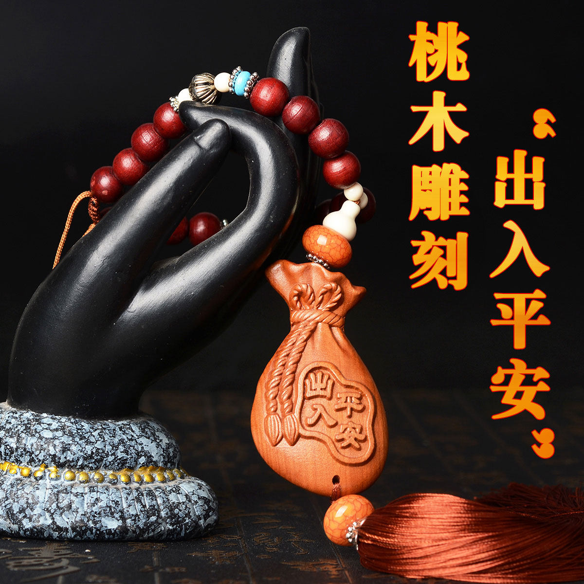 风水阁汽车貔貅木雕挂饰13592